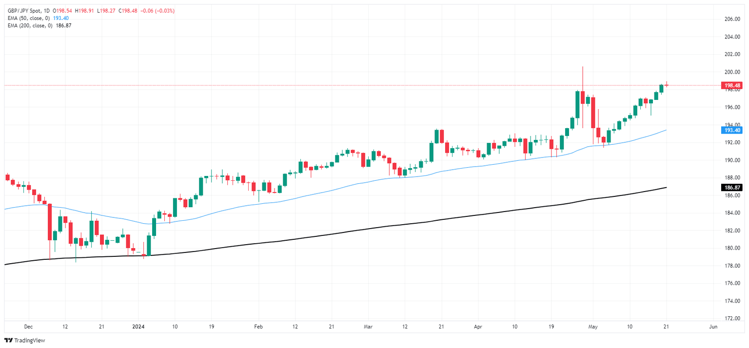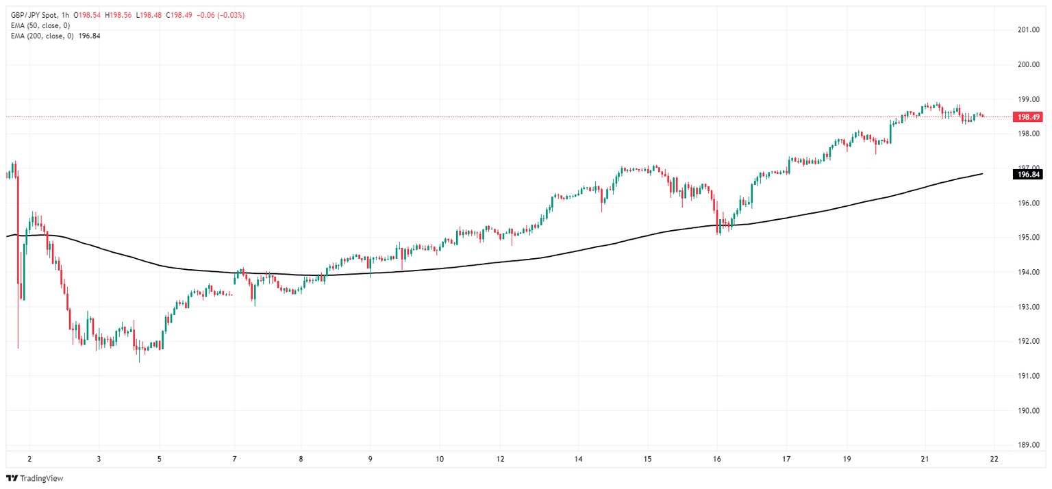 GBP/JPY remains in a tight holding pattern just south of the 199.00 handle as Pound Sterling (GBP) traders await key data prints from the UK to pick a direction. Japanese data remains thin this week, leaving Guppy traders to focus on UK Consumer Price Index (CPI) inflation and Purchasing Managers Index (PMI) figures.