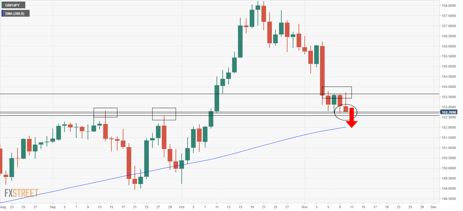 - GBP/JPY is probing multi-week lows under 153.00 ahead of UK GDP data out on Thursday.