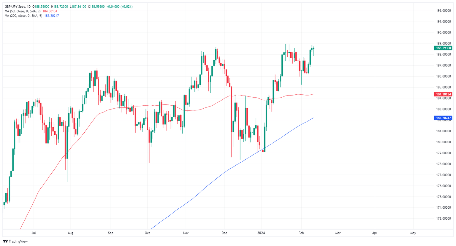 The GBP/JPY saw an early dip below the 188.00 handle before markets recovered back into familiar levels on Monday, and the Guppy pair continues to trade into familiar consolidation levels heading into a heavy week full of UK and Japanese figures on the economic calendar’s data docket.