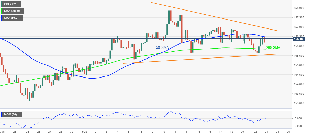 In doing so, the cross-currency pair battles 50-SMA resistance around 156.50 to justify the upside momentum portrayed by the Momentum indicator, as well as the pair’s ability to stay beyond the 200-SMA.