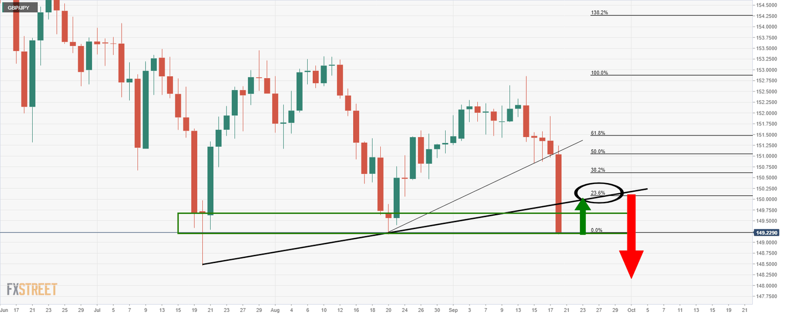 GBP/JPY Price Analysis: Bears charge into significant demand area, 150.00 resistance eyed