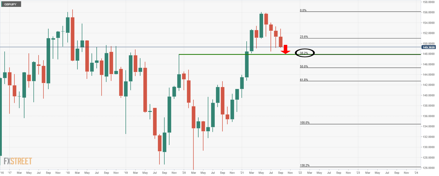 - GBP/JPY bears eye a medium-term 147.96 monthly target.