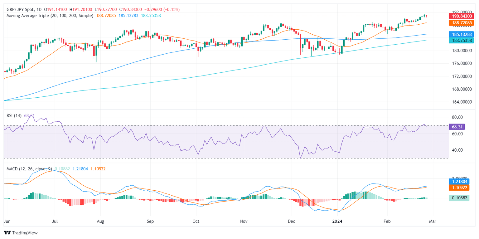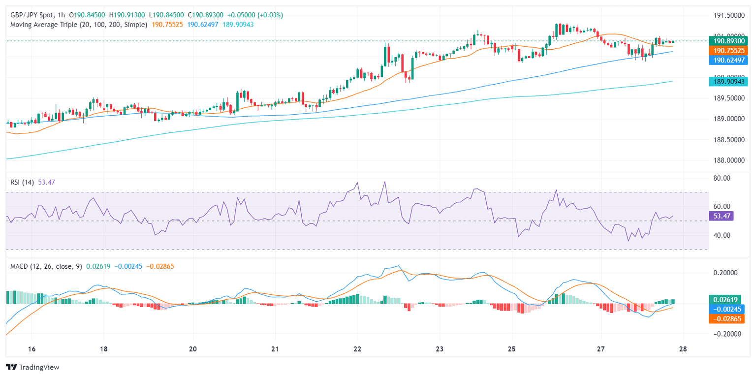- The GBP/JPY currently trades at 190.86 marking a 0.12% loss in Tuesday's session.