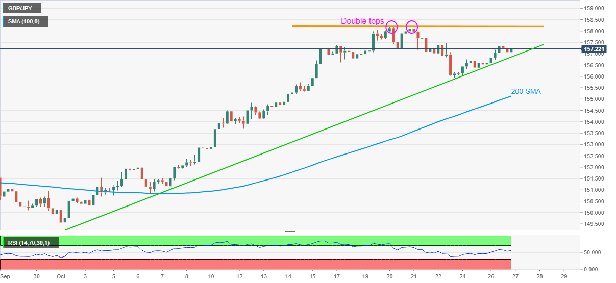 Hence, the latest peak around 157.70 is on the cards before the double tops near 158.20 challenge GBP/JPY upside.