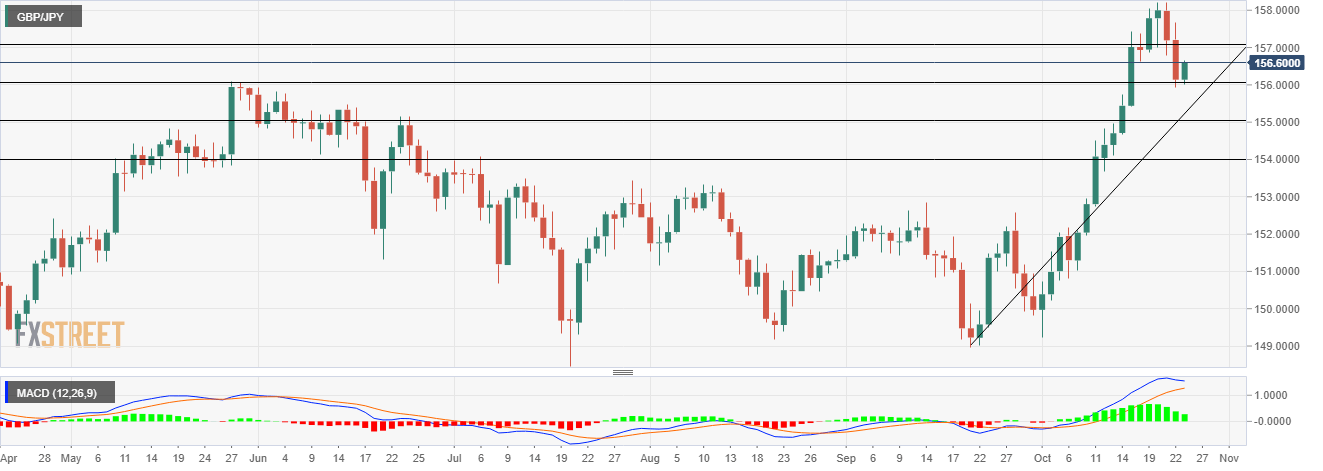 The GBP/JPY cross-currency pair remains upbeat on the fresh trading week. The pair opened lower but managed to catch the upside momentum. At the time of writing, GBP/JPY is trading at 156.47, up 0.21% for the day.