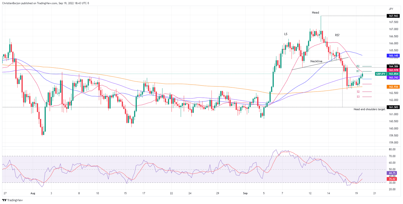 - If the GBP/JPY clears the 164.30 mark, that will invalidate the head-and-shoulders chart pattern, paving the path for further gains.