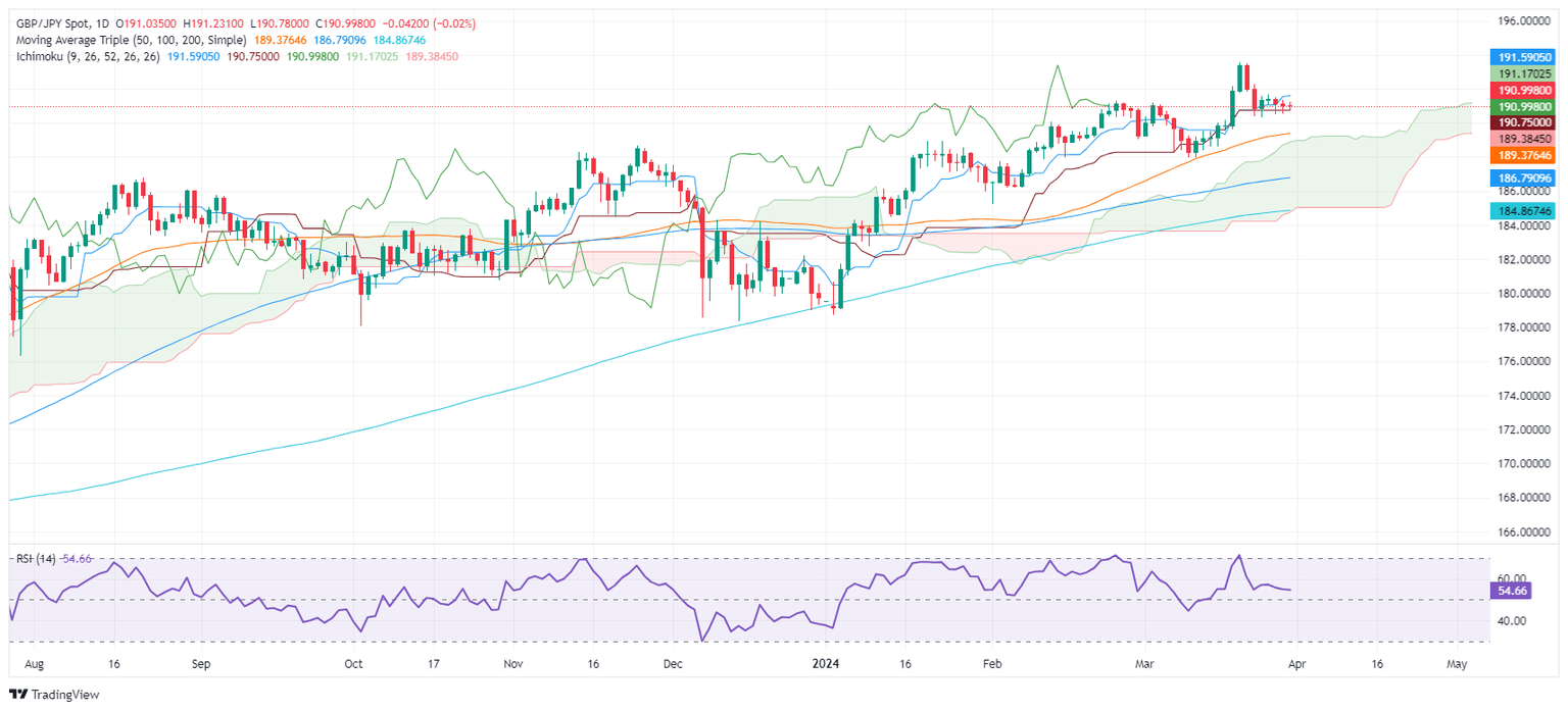 - GBP/JPY hovers around 191.00, with trading subdued due to the Easter holiday.