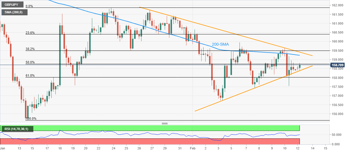 It’s worth noting, however, that the 200-SMA hurdle surrounding 159.30 acts as an immediate upside hurdle for the GBP/JPY buyers to watch before the stated triangle’s top line, close to 159.45 by the press time.