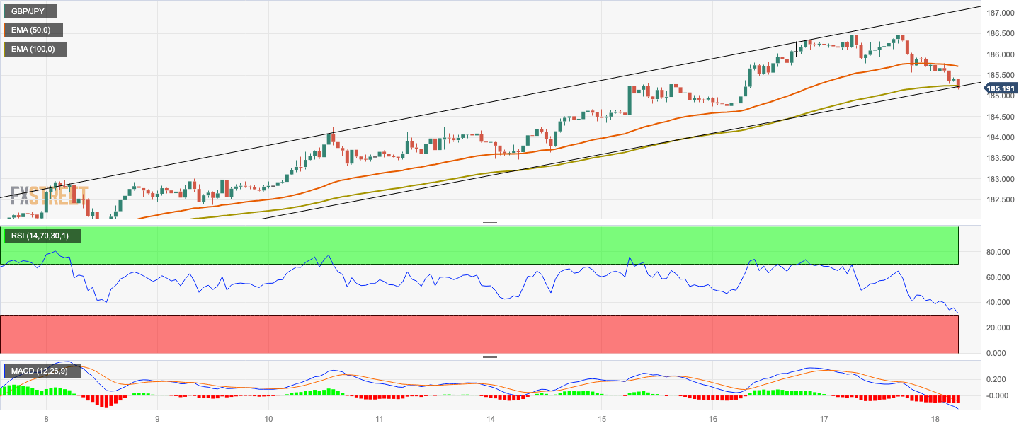 GBP/JPY Price Analysis: Remains on the defensive around 185.20 ahead of UK Retail Sales