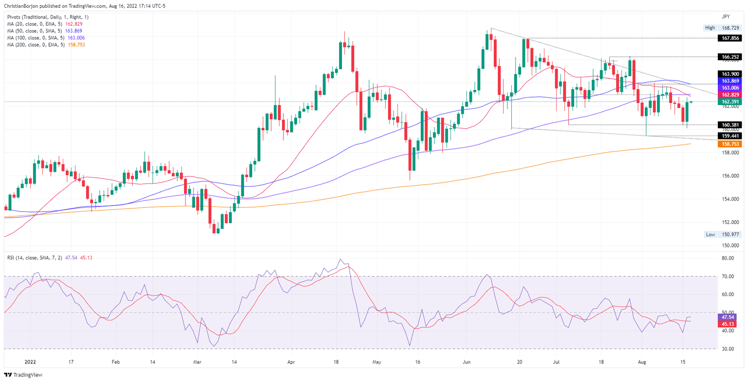 The cross-currency pair is exchanging hands below the 20, 100, and 50-day EMAs, suggesting that the GBP/JPY is downward biased. Nevertheless, Tuesday’s rally towards the 162.80-163.00 area, although rejected, it opened the door for further gains. So from a technical perspective, a break above the latter will put the 50-day EMA at 163.086 in play, ahead of the July 27 high at 166.33.