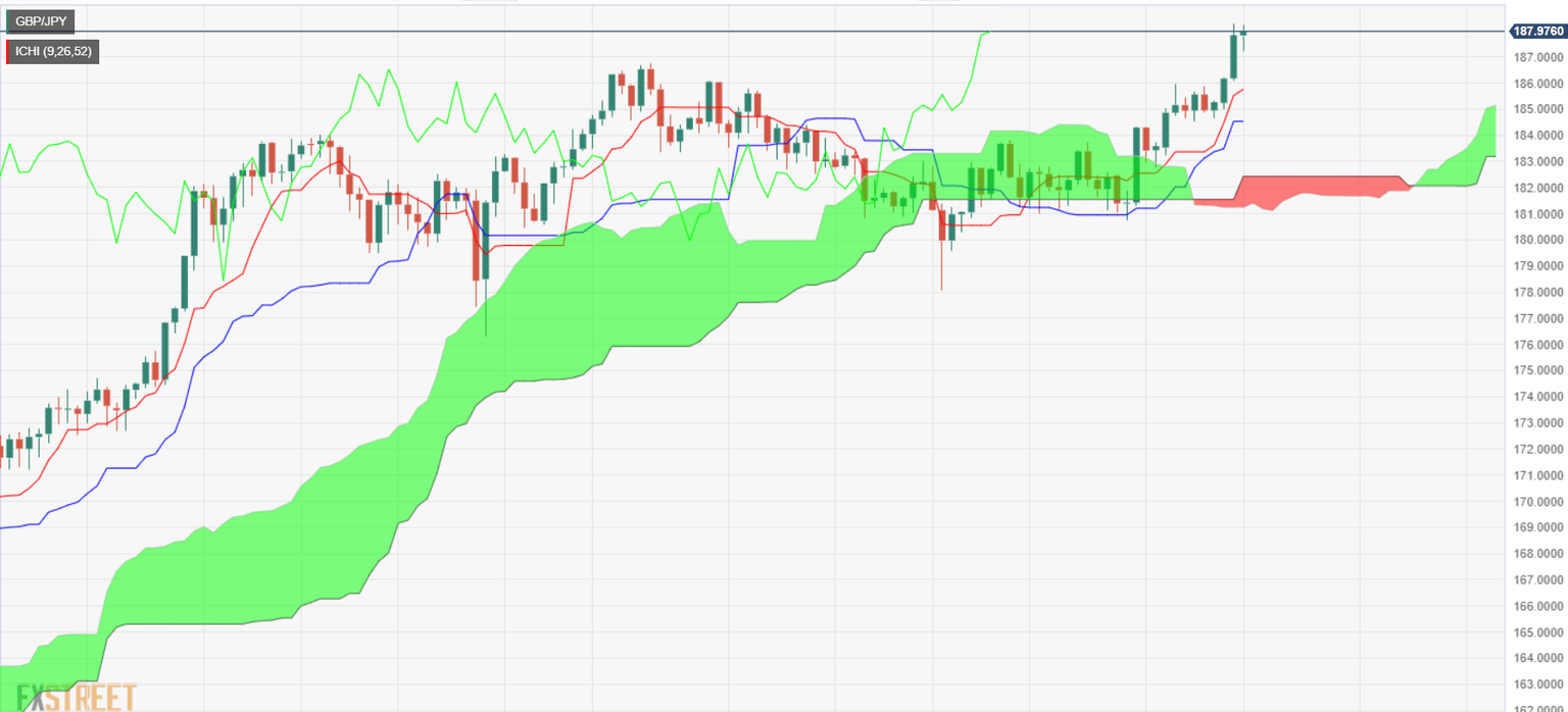 - GBP/JPY slips below 188.00, but it remains trading in the green amid a risk-on mood.