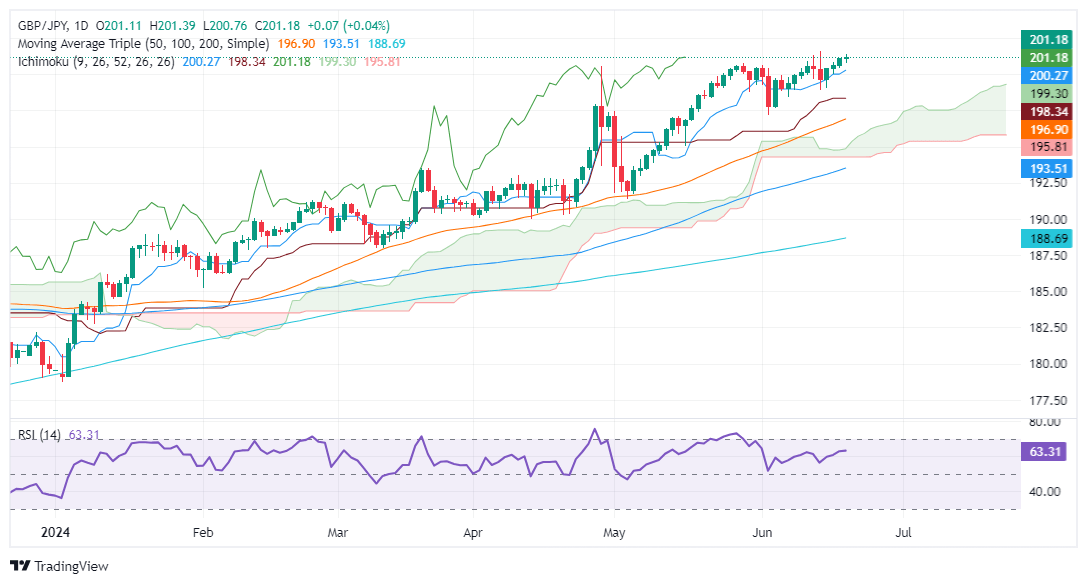 GBP/JPY Price Analysis: Subdued, trades flat above 201.00