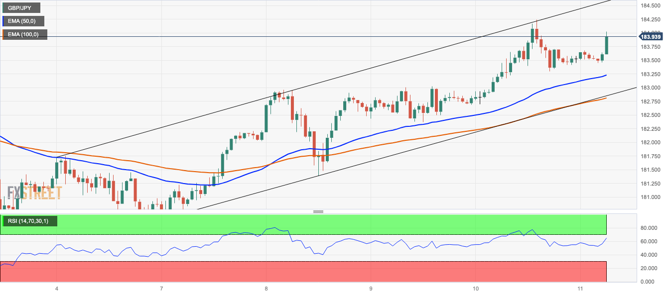 The GBP/JPY cross gains ground in positive territory for the fifth consecutive day, heading into the early European session on Friday. The cross currently trades near 183.90, up 0.24% for the day.