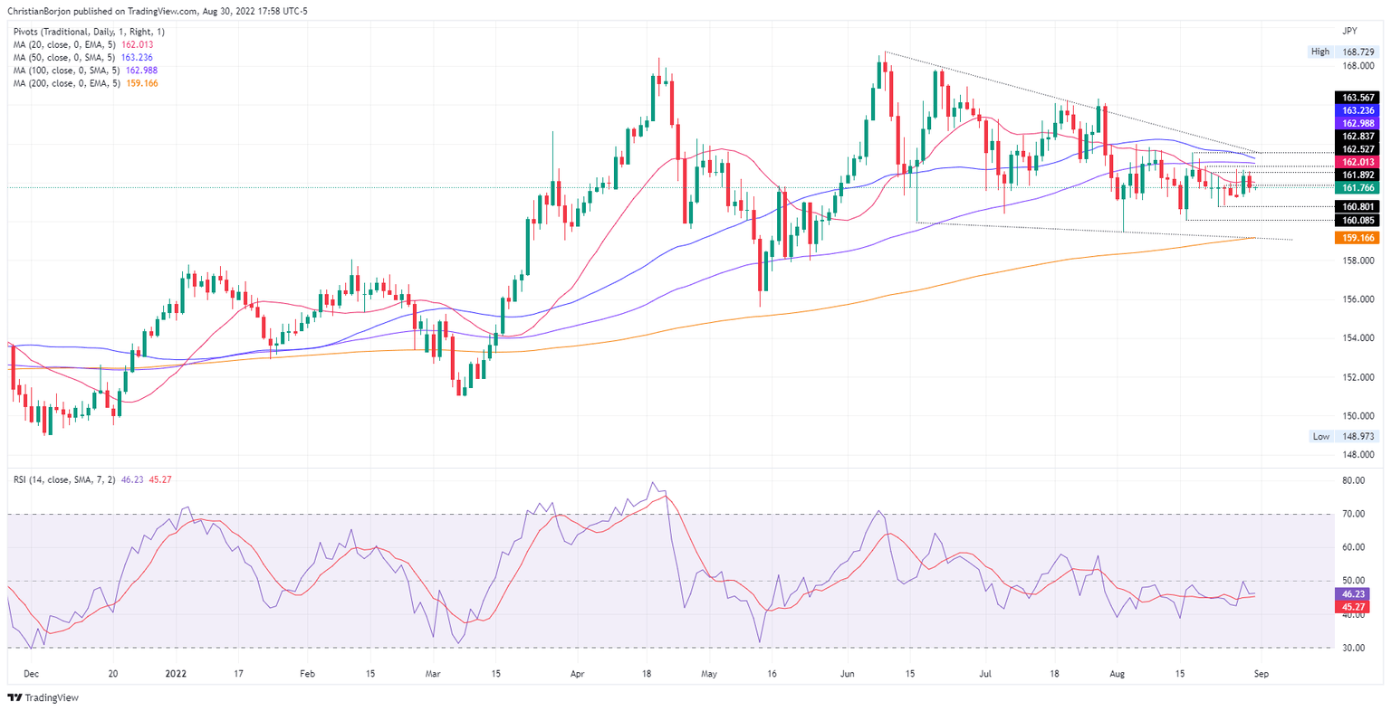 The GBP/JPY is subdued as Wednesday’s Asian Pacific session begins, trading within familiar levels, unable to break above/below the 160.80-162.83 region for nine consecutive days. At the time of writing, the GBP/JPY is trading at 161.76, below the 20-day EMA.