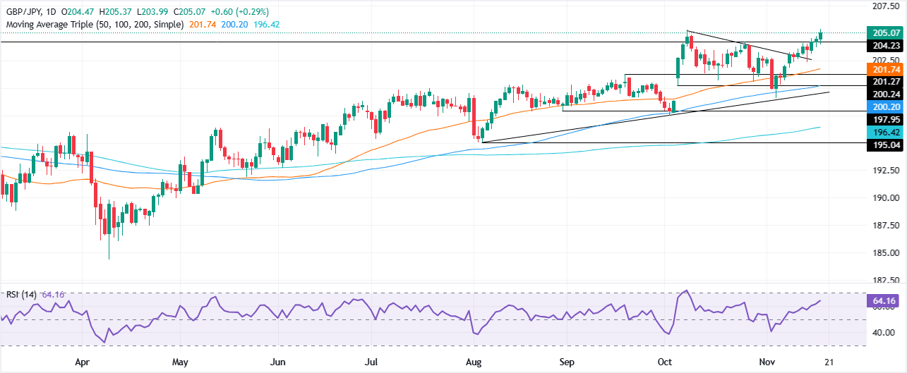 GBP/JPY Price Forecast: Bulls in control, hit fresh YTD high above 205.00