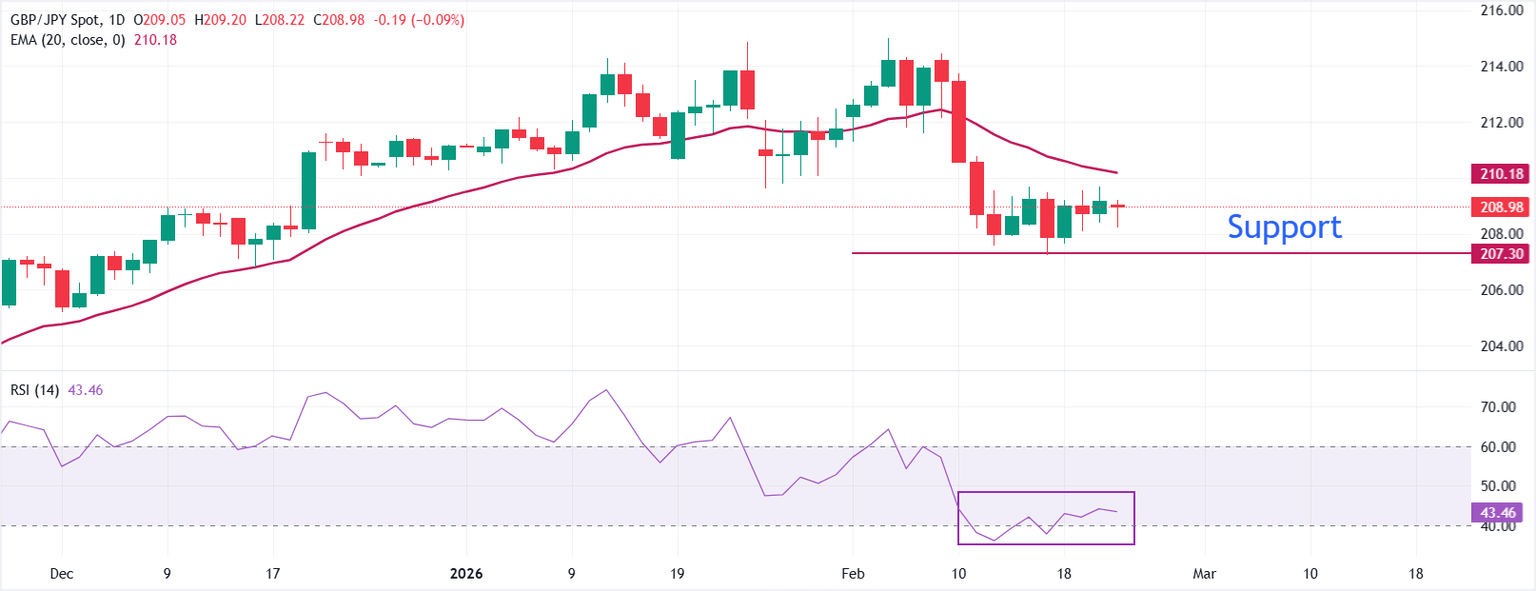 The GBP/JPY pair is down 0.11% to near 208.80 during the European trading session on Monday. The cross faces selling pressure as the United States (US) Supreme Court ruling against President Donald Trump’s tariff policy has improved the safe-haven demand of the Japanese Yen (JPY).