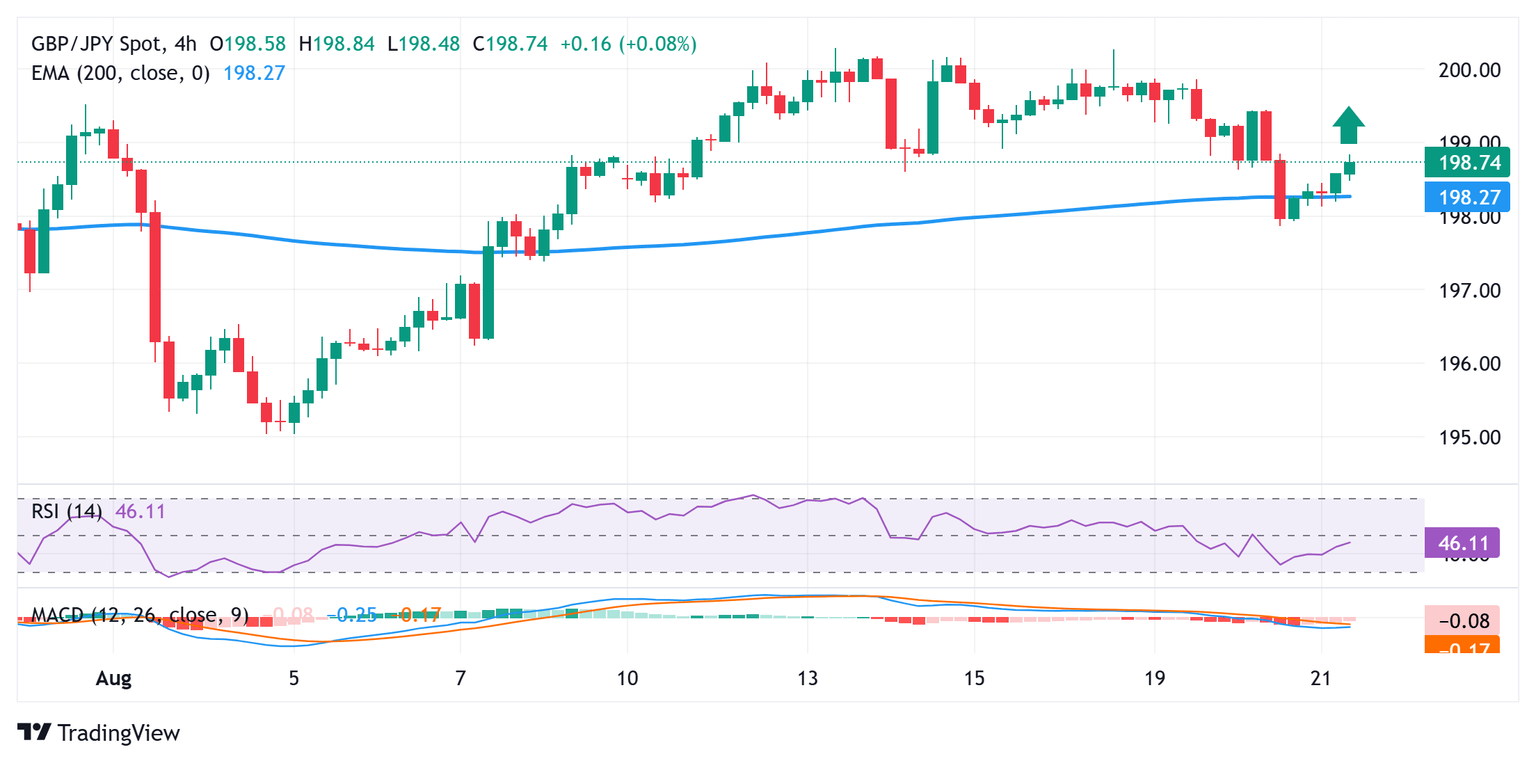 From a technical perspective, the GBP/JPY cross showed resilience below the 200-day Exponential Moving Average (EMA) on Wednesday. The subsequent move up suggests that this week's corrective pullback from levels beyond the 200.00 psychological mark, or the highest level since July 2024, might have run its course and backs the case for a further appreciating move.