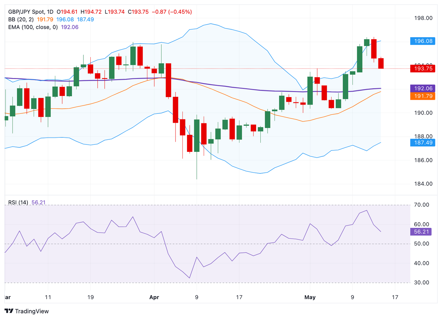 The GBP/JPY cross remains under some selling pressure around 193.85 during the early European session on Thursday. The Japanese Yen (JPY) edges higher against the Pound Sterling (GBP) amid the prospect that the Bank of Japan (BoJ) will hike rates again. Investors will closely watch the preliminary reading of UK Gross Domestic Product (GDP) data for the first quarter (Q1), which will be released later on Thursday.