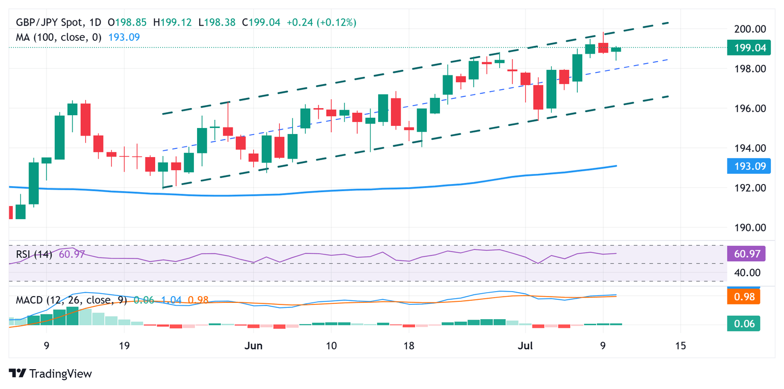 The GBP/JPY cross attracts some dip-buyers near the 198.40-198.35 region during the Asian session on Thursday and stalls a modest corrective pullback from a one-year high touched the previous day. Spot prices currently trade around the 199.00 mark and seem poised to appreciate further amid a bullish technical setup.
