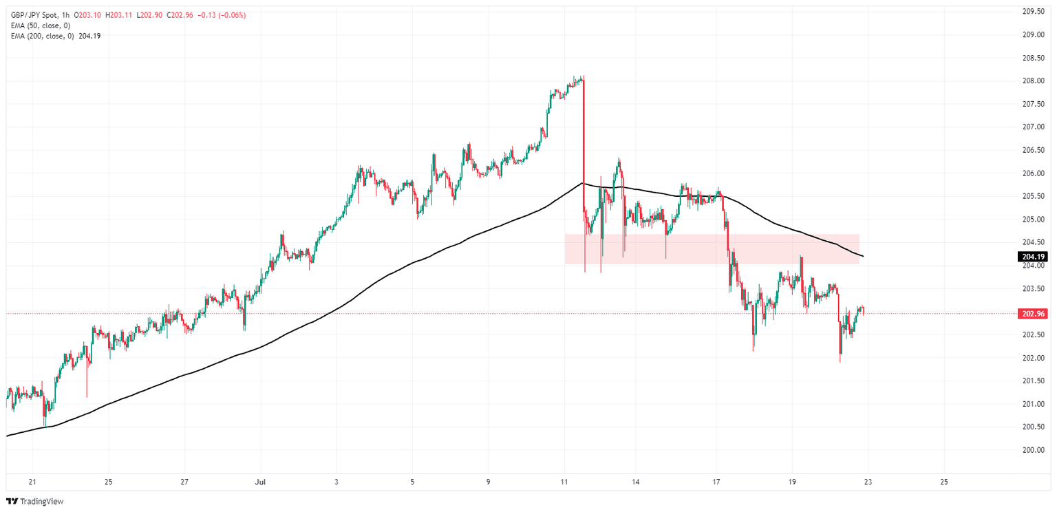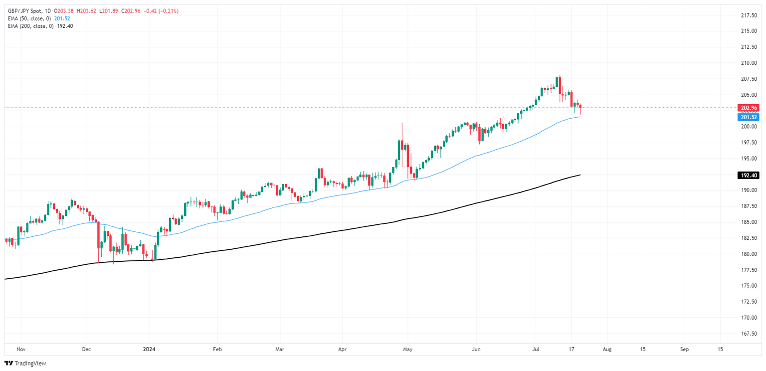 GBP/JPY continued a near-term pattern of testing the low side on Monday, briefly dipping below the 202.00 handle before recovering back into familiar territory near 203.00. The pair has been knocked off of 16-year highs above 208.00 after a fresh round of suspected Yenterventions from the Bank of Japan (BoJ) the week before last, but downside momentum has drained out quickly. The Yen’s near-term resurgence now appears poised to face renewed threat as broader markets have little reason to bid JPY higher.