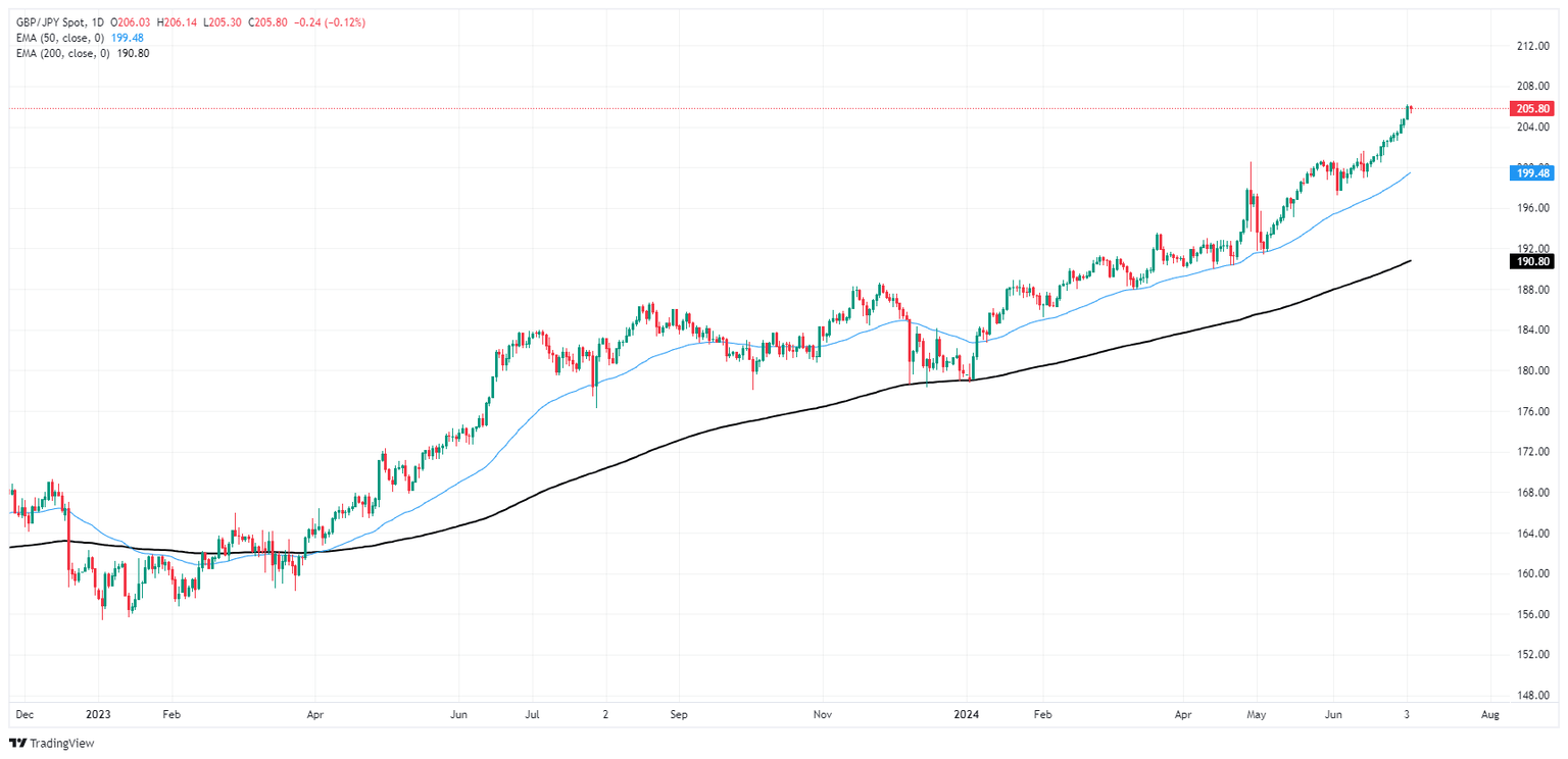 Topside technical barriers have all evaporated as GBP/JPY continues to grind into fresh 16-year highs regularly, and the pair is sticking close to the high end after cracking above the 206.00 handle this week.