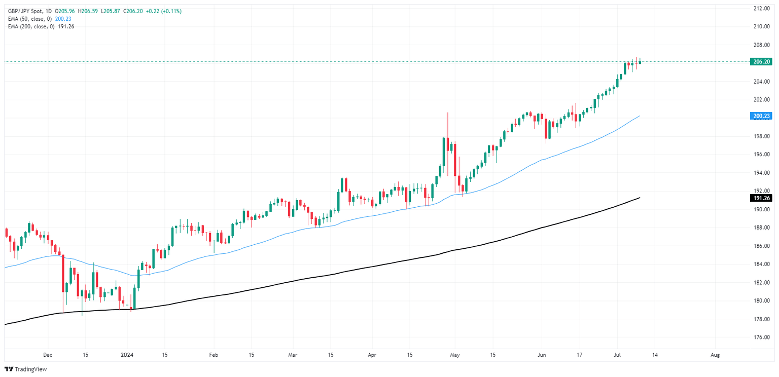 GBP/JPY failed to set a new multi-year high on Tuesday as the pair churns on the high end of the 206.00 handle. Long-running Yen weakness has left the pair stuck in the rafters of its highest prices in 16 years.