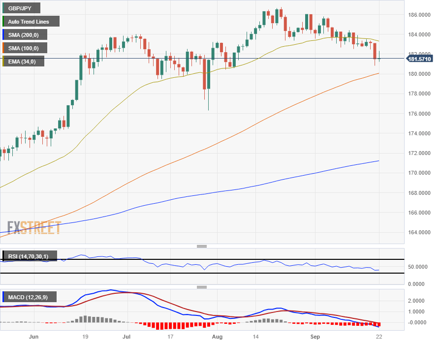 The GBP/JPY is ticking into the south side of the 181.50 handle after the Pound Sterling (GBP) failed to recover any meaningful ground from Thursday's backslide. The Guppy is down almost a full percentage point this week.