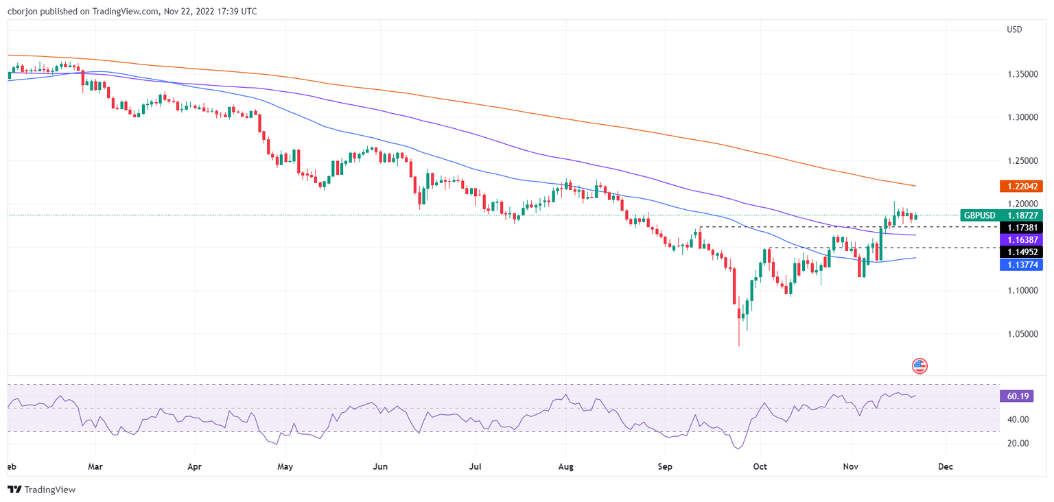 The Pound Sterling (GBP) climbed in the North American session, albeit Federal Reserve (Fed) hawkish commentary continued, though officials expressed the likelihood of moderating the pace. Another factor, China’s Covid-19 outbreak, sparked investors’ fears, though they waned as Wall Street is trading in the green. At the time of writing, the GBP/USD is trading at 1.1872, above its opening price by 0.40%.