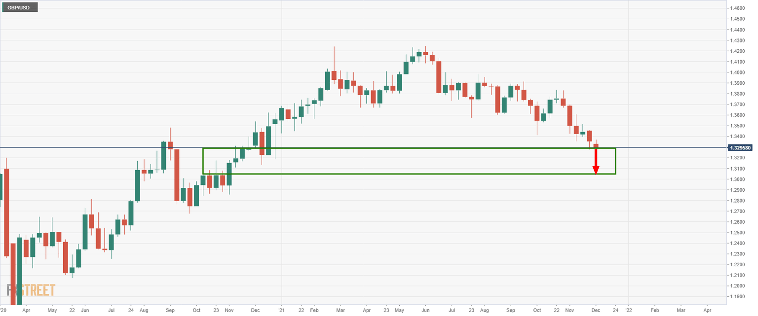 GBP/USD bears pressing on 1.33 the figure, BoE and Fed in focus