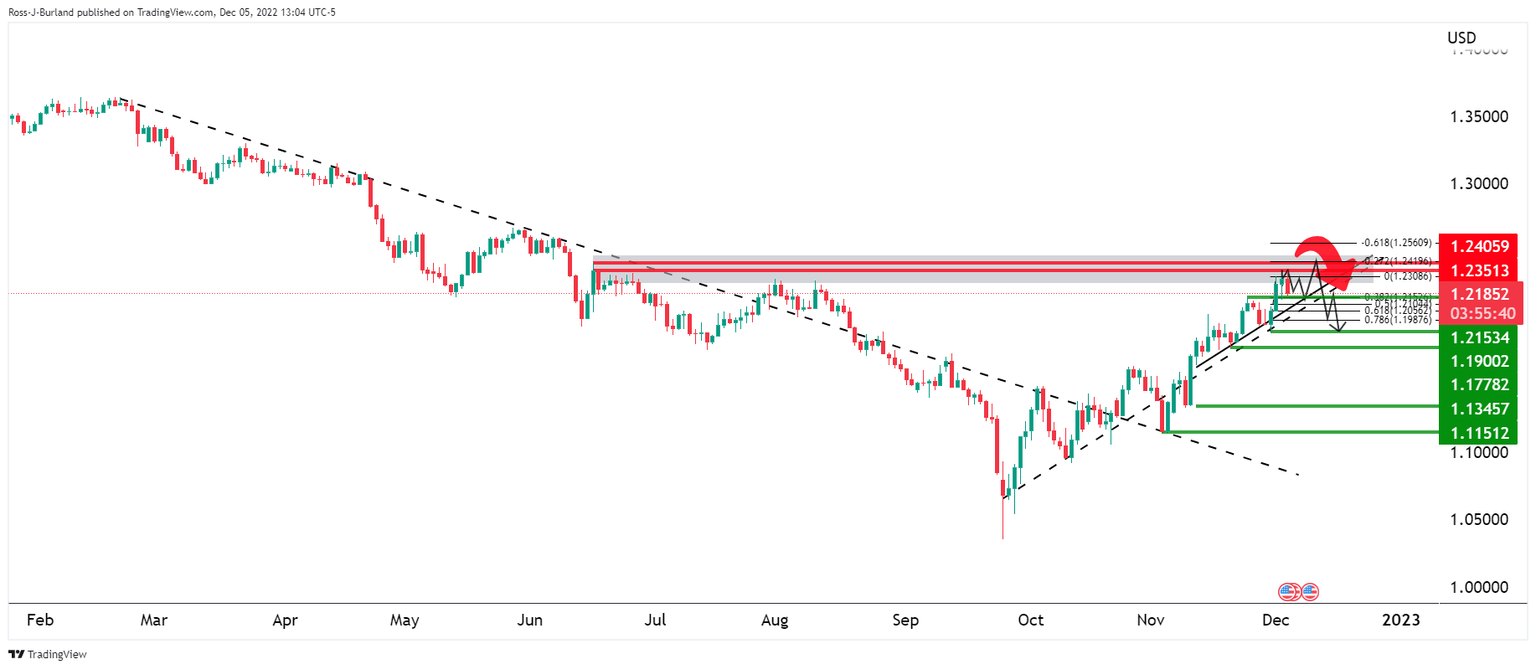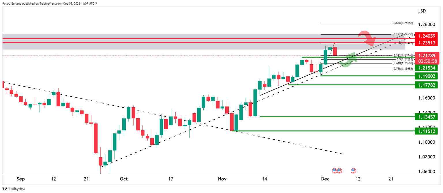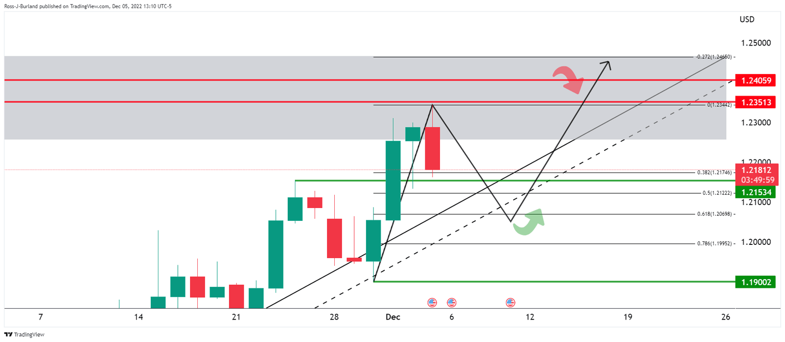 At the time of writing, GBP/USD is down 0.78% after falling from a high of 1.2344 to a low of 1.2162 so far. The US Dollar is climbing in a risk-off environment as an initial boost of investor enthusiasm over signs of possible loosening in COVID restrictions in China faded and on some speculation that the Federal Reserve may not be able to pivot as soon as December.