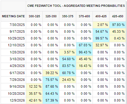- Odds of a second rate cut in October fell off the bottom of the charts as Fed awaits tariff impacts.