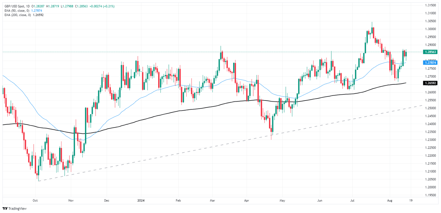 GBP/USD found the gas pedal on Thursday after a steeper-than-expected recovery in US Retail Sales pushed Cable back into the high end. Market sentiment rebounded on the day after fears of a possible US recession were cooled by US data beating expectations, and the Pound Sterling caught additional bullish momentum from UK Gross Domestic Product (GDP) growth meet expectations and UK Manufacturing Production handily exceeding forecasts in July.