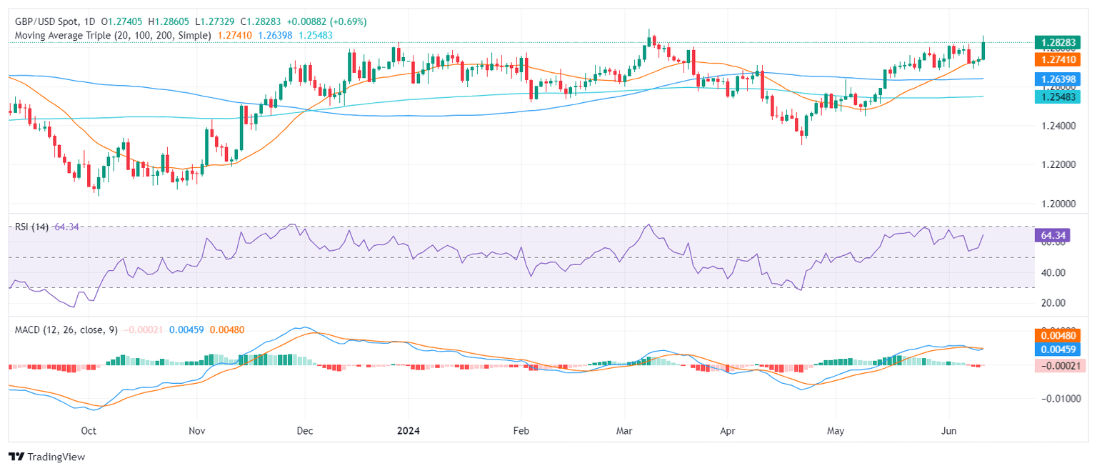 On Wednesday, the GBP/USD cleared some of its gains following the Federal Reserve (Fed) decision to hold rates steady at 5.25%-5.50% and stands at 1.2830. What strengthened the USD is that the dot plot suggested that the members are seeing two instead of three rate cuts in 2024.