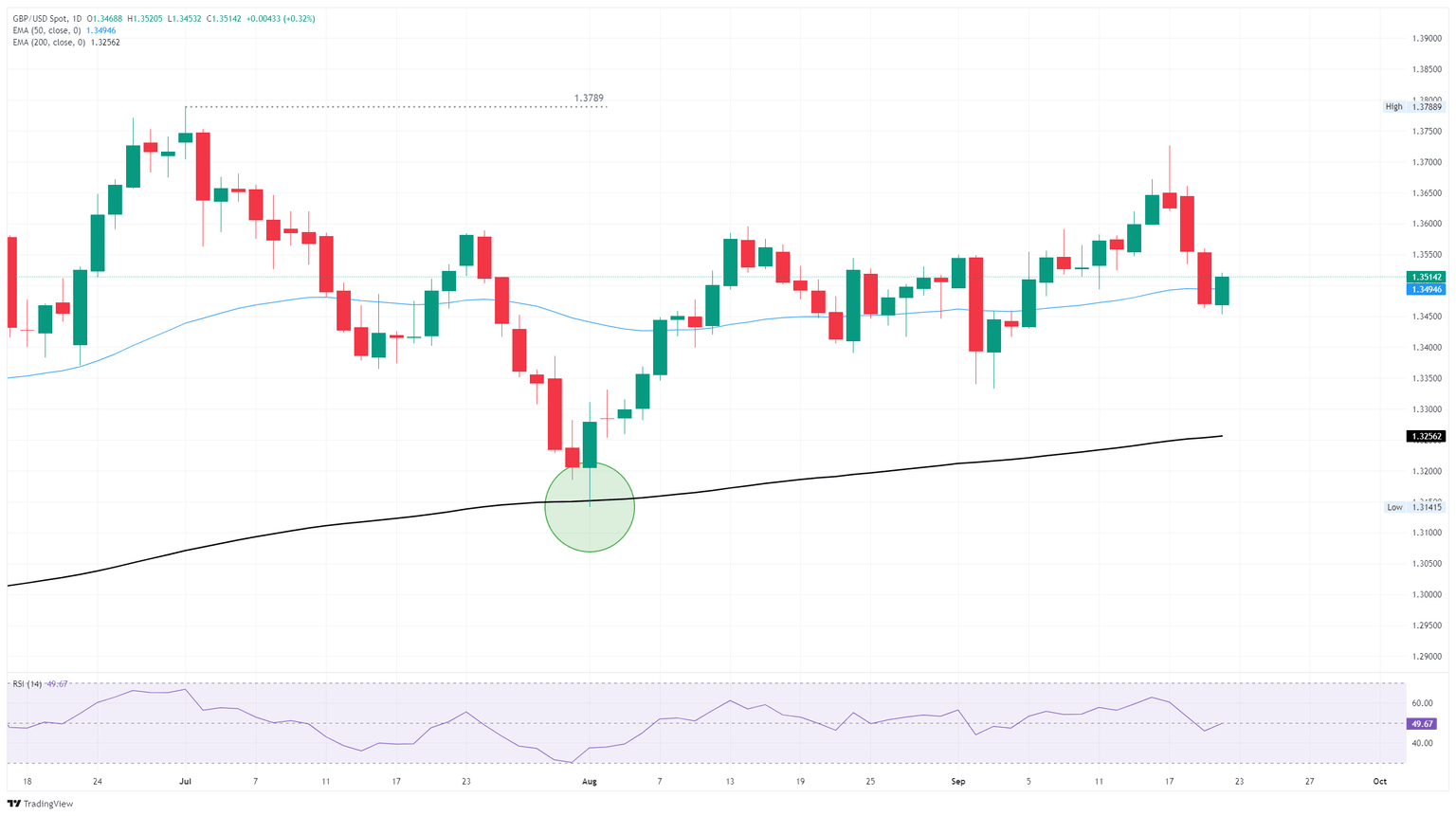 A fresh bullish turnaround for the GBP/USD pair puts Cable on pace to extend a technical bounce from the 50-day EMA near 1.3500, but the 1.3600 handle remains a significant technical hurdle for near-term price action.