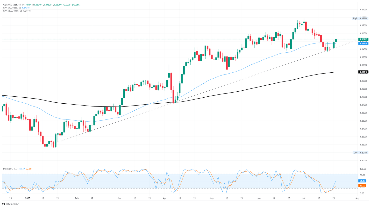 - GBP/USD climbed back above 1.3500 for the first time in over a week.