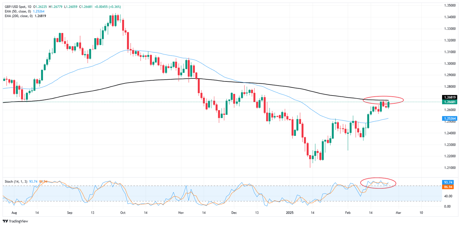 Tuesday’s bullish tilt in Cable trading leaves GBP/USD hamstrung near the 200-day EMA around 1.2680. Bulls have managed to keep the pair buoyed on the high end after a remarkable 4.7% recovery from mid-January’s swing low near 1.2100, however a hard technical ceiling is priced in just south of thew 1.2700 handle.