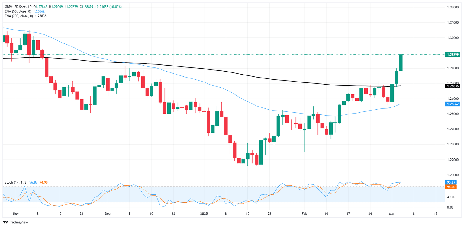 GBP/USD’s 100+ pip gain on Wednesday has pushed price action well above the 200-day Exponential Moving Average (EMA) near 1.2685. The pair could be poised for a new medium-term bull run, but a brief exhaustion play could be on the cards as technical oscillators continue to signal overbought conditions.