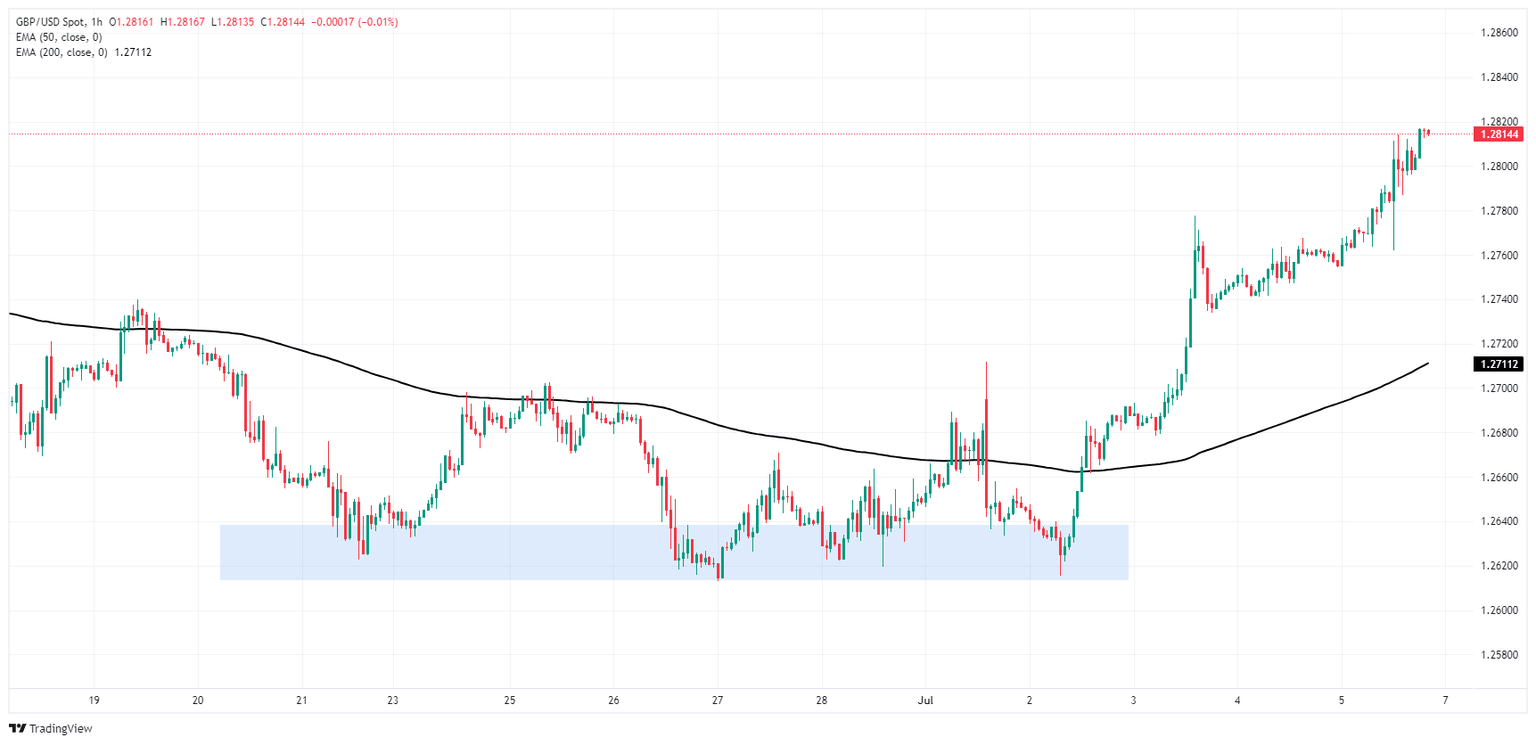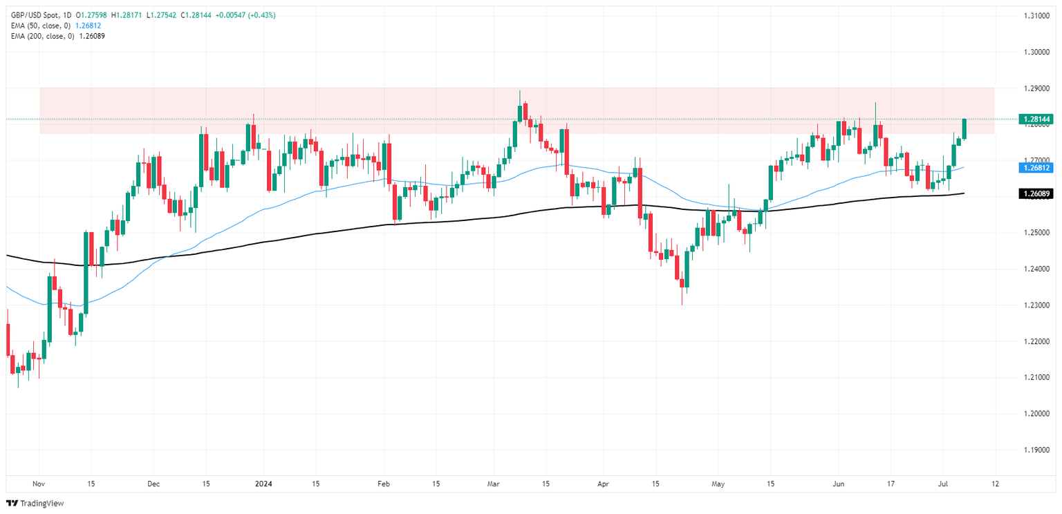 GBP/USD rallied back over the 1.2800 handle on Friday, bolstered by a broad-market risk appetite recovery fueled by reinvigorated rate cut hopes. Investors are betting that the Federal Reserve (Fed) will be pushed further towards rate cuts in the third quarter after US Nonfarm Payrolls (NFP) labor figures gave a lopsided print, beating forecasts but carrying steep revisions to previous figures.