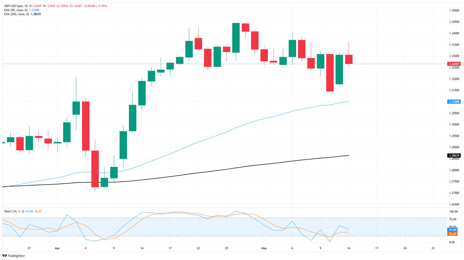Thursday saw Cable bids continue to chalk in a new congestion phase, with GBP/USD poised for an extended battle near the 1.3300 handle. Price action has been in a choppy phase since slipping back from recent highs near 1.3450, but bearish momentum has been struggling to drag bids back down to the 50-day Exponential Moving Average (EMA) near 1.3100.