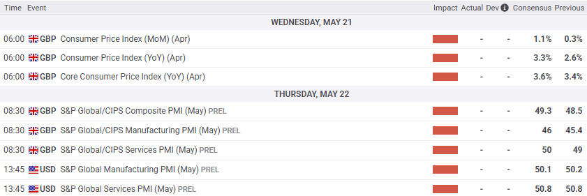 - UK CPI inflation due Wednesday, UK and US PMI double header due on Thursday.