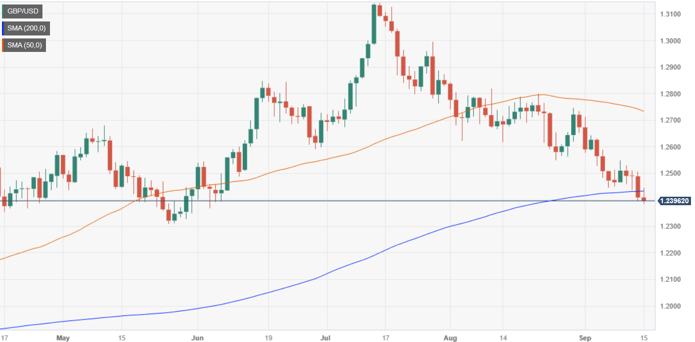 The Pound Sterling (GBP) continues to weaken against the US Dollar (USD) for the second consecutive day after a tranche of positive US economic data bolstered the Greenback. Hence, the GBP/USD is set to finish the week with losses, exchanging hands at 1.2397, below its 200-day Moving Average (DMA).
