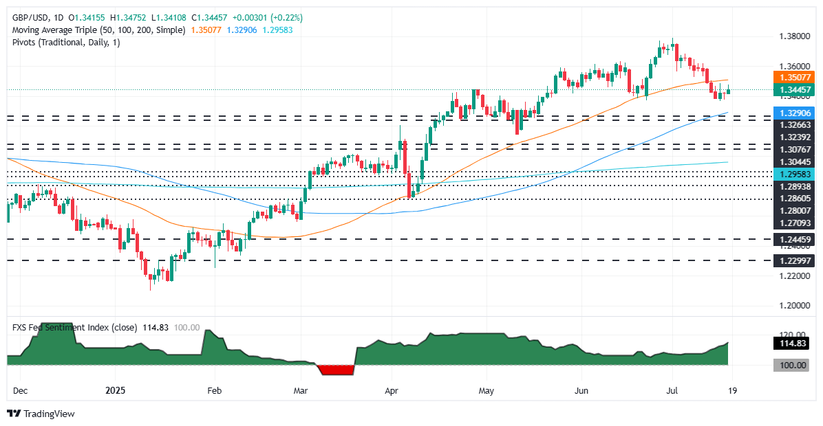Cable climbs to 1.3442 as US sentiment improves but inflation expectations ease, supporting July rate cut hopes