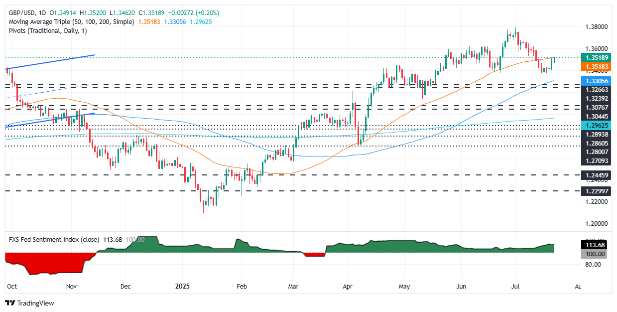 - GBP/USD rises to 1.3504 as Greenback weakens for second consecutive session.