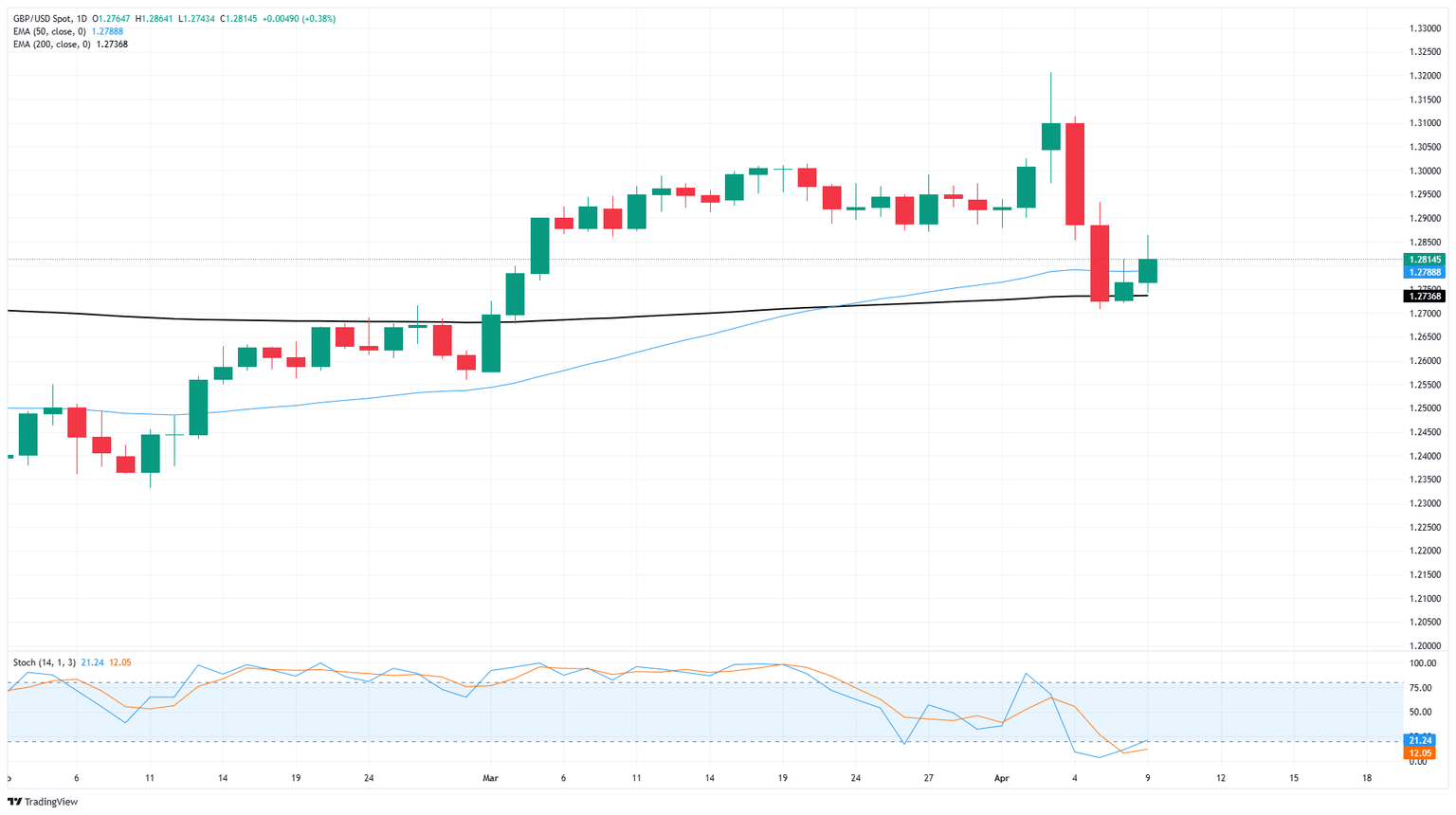 GBP/USD tested higher on Wednesday, climbing back over the 1.2800 handle after broad-market sentiment recovered across the board. The Trump administration has once again pivoted away from its own “no exceptions, no delays” tariff policy, and has again delayed tariffs, this time for 90 days.