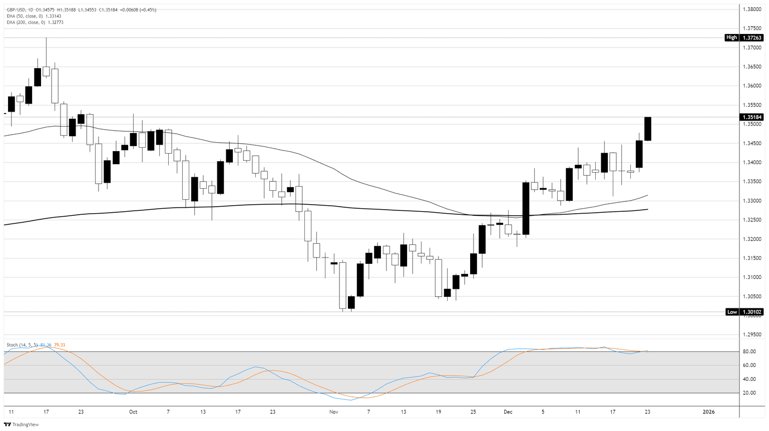 GBP/USD climbed approximately 0.45% on Tuesday, supported by a general decrease in global US Dollar (USD) flows. Investor sentiment is positive as we approach the midpoint of a holiday-shortened week, with the Greenback pressured by expectations for further easing by the Federal Reserve (Fed) into 2026.