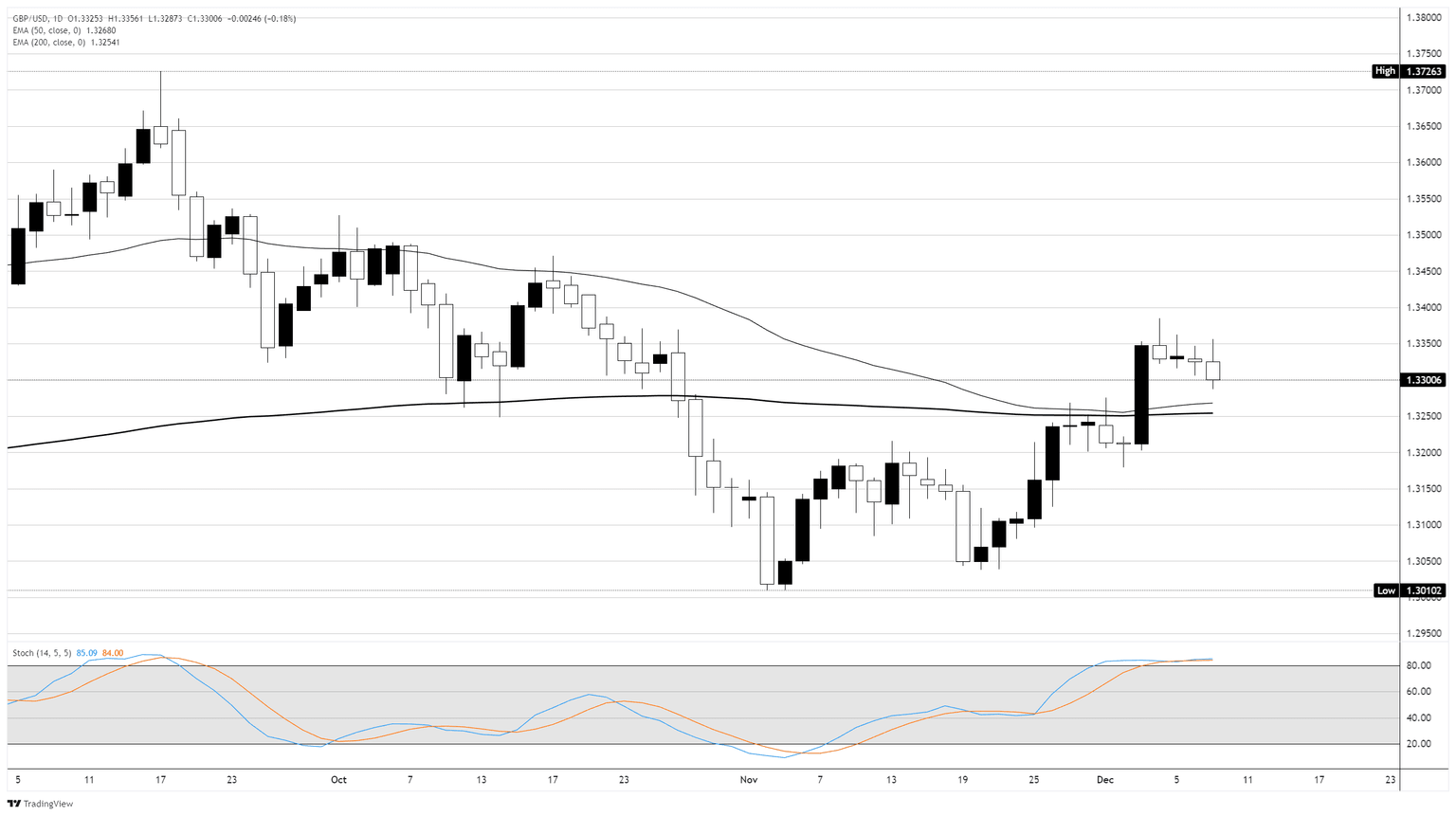 GBP/USD eased back toward the midrange on Tuesday, shedding around one-fifth of one percent after facing an intraday technical rejection from the 1.3350 level. Price action has slumped back into the 1.3300 handle and is holding just north of the long-term 200-day Exponential Moving Average (EMA) near 1.3250 as markets hunker down for the last Federal Reserve (Fed) interest rate decision of 2025.