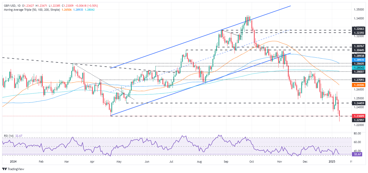 - GBP/USD dips by 0.49% despite inactive US markets, influenced by record high UK bond yields and fiscal worries.