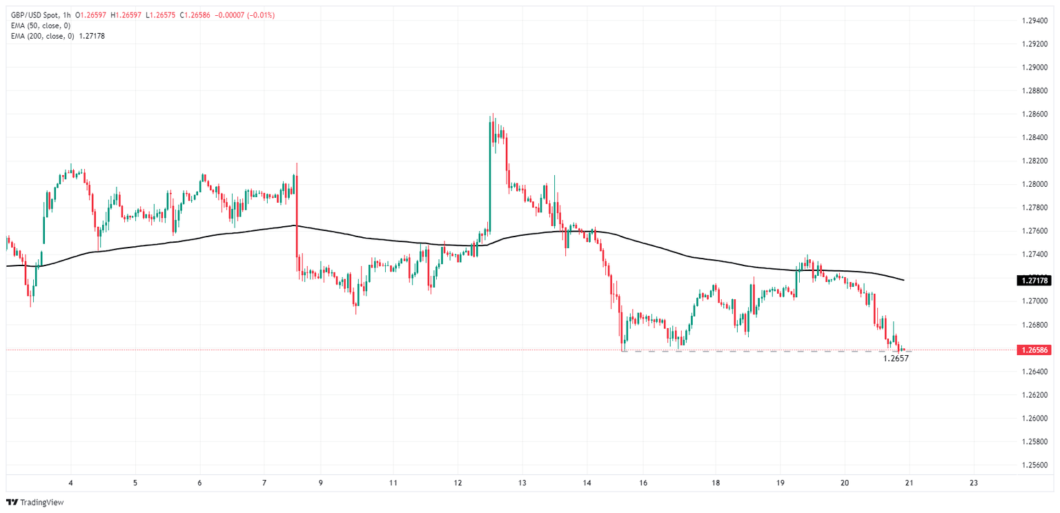 The value of the Pound Sterling dropped below the 1.2700 mark against the US Dollar on Thursday, showing a decline and moving lower towards recent lows at 1.2657. Technical indicators suggest a potential continuation of this bearish trend as the price failed to stay above the 200-hour Exponential Moving Average (EMA) at 1.2721. Further decreases in value are likely if there is no significant upward movement to reverse this trend.