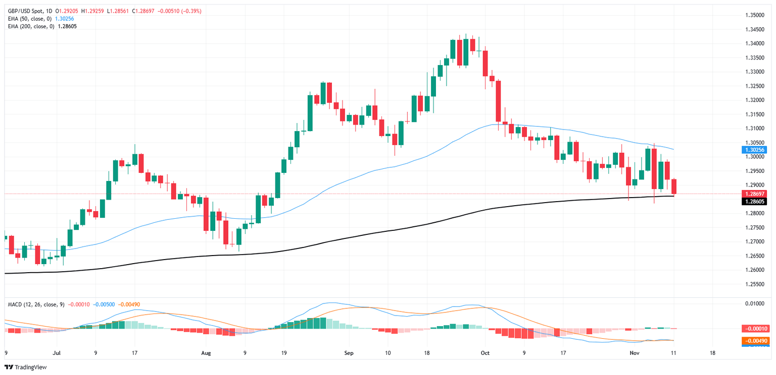 - GBP/USD settled below 1.2900 on Monday as Sterling flows tighten up.