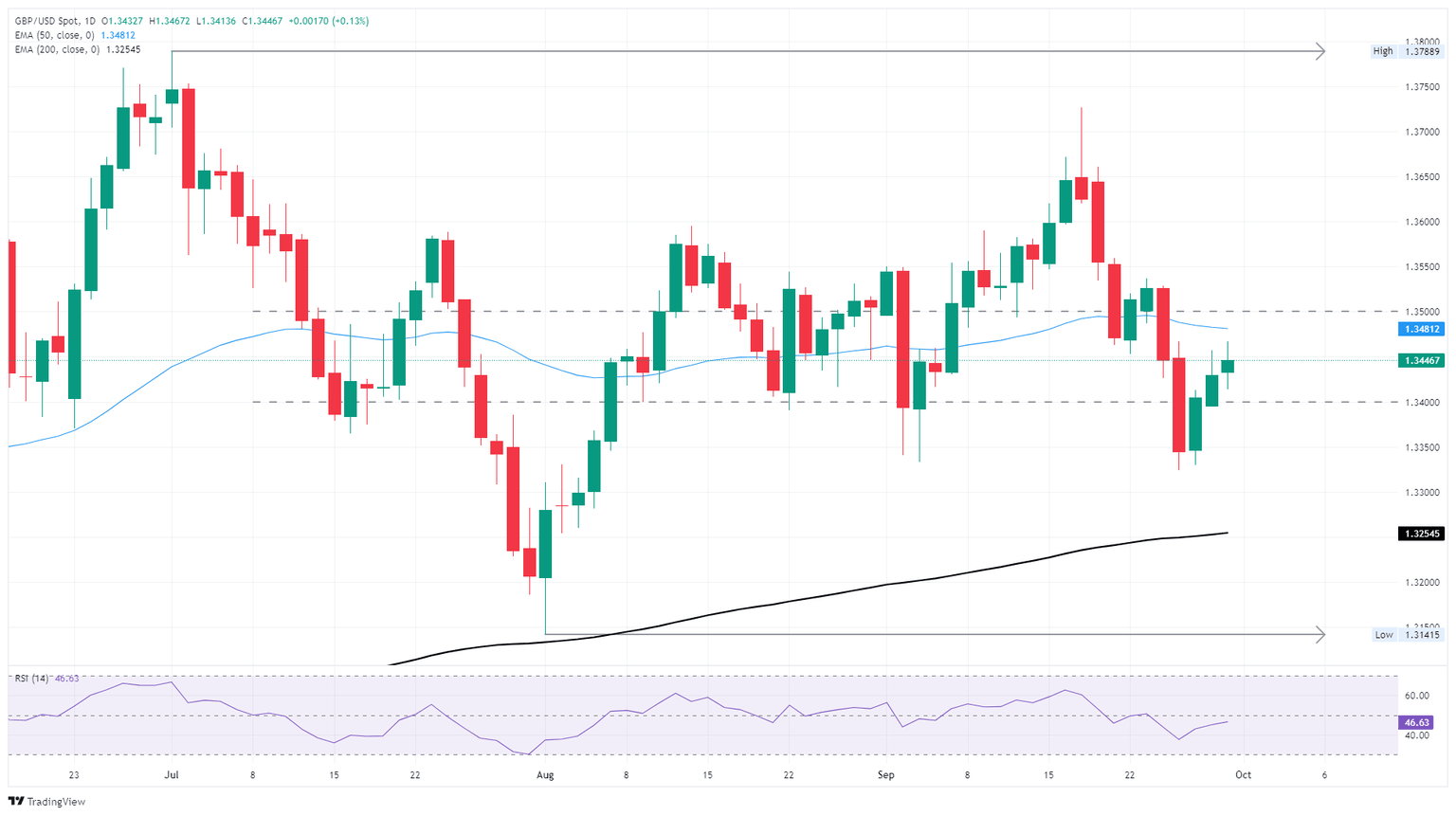 A third straight bullish day on the Cable chart has pushed GBP/USD bidsa into an uneasy middle ground between key moving averages. Bullish price action is facing a sharp slowing in momentum just below the 50-day Exponential Moving Average (EMA) near 1.3480. On the bottom end, the 200-day EMA is providing a firm technical floor from the 1.3250 region.